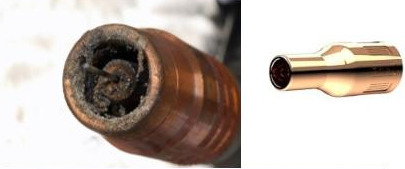 Outra função do bocal é atuar como barreira física para evitar curto-circuito acidental entre o bico de contato e a peça durante a solda.