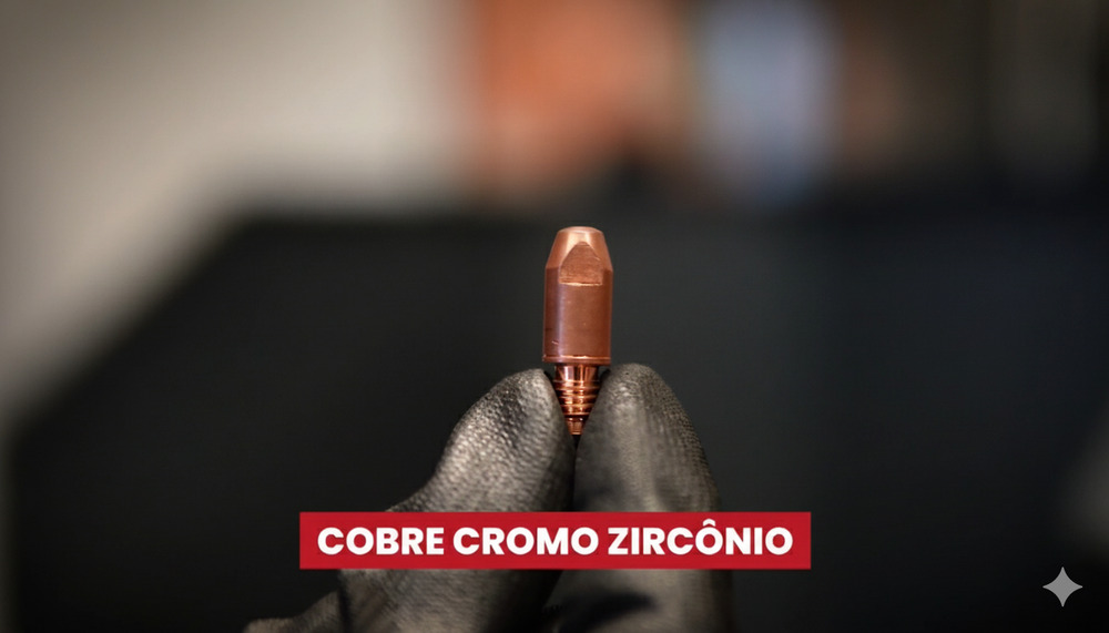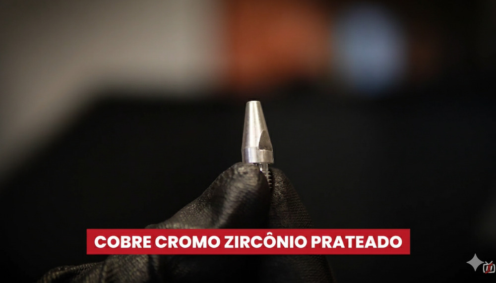 Esse bico combina a robustez do cobre cromo zircônio com um banho de prata, que melhora sua vida útil e performance.