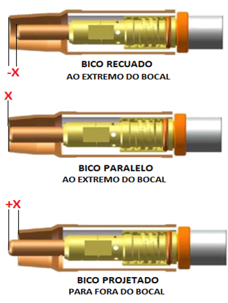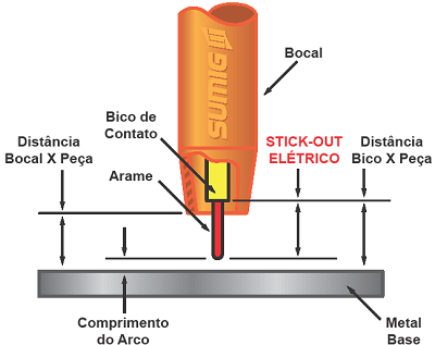 Utilize uma distância máxima equivalente a 15 vezes o diâmetro do arame entre o bico de contato e a peça (stick-out elétrico). Essa medida é crucial para garantir uma transferência mais estável. Um stick-out inadequado pode aumentar a instabilidade do arco, gerar mais respingos e comprometer a qualidade do cordão de solda.