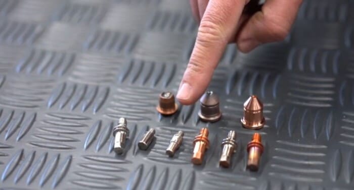 O eletrodo é um componente que sofre desgaste toda vez que o arco é aberto. Isso ocorre porque, ao apertar o gatilho da tocha, uma pequena quantidade do material interno do eletrodo é consumida. Com o tempo, esse desgaste reduz a eficiência do corte, até que o eletrodo não consiga mais cortar adequadamente nenhuma espessura de material.
