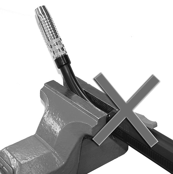 - Não prender a tocha diretamente na morsa, sob risco de danificar seus componentes. Se necessário fazê-lo, recomenda-se desmontar o punho e prender a base do corpo.