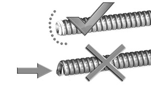 - O guia espiral deve ser limpo com ar comprimido seco. Deve ser substituído quando estiver deformado, enferrujado, ou freando a passagem do arame. Para ser retirado da tocha, o cabo deve estar esticado.