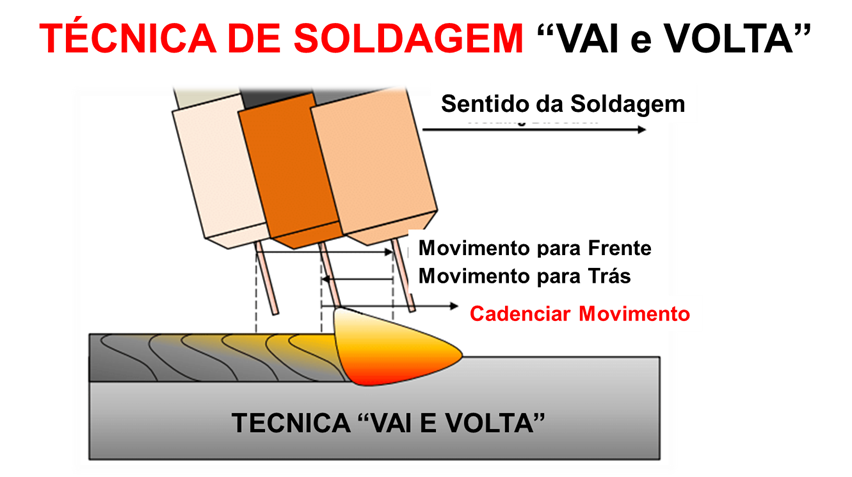5. Soldar empurrando é possível fazer o movimento de VAI e VOLTA. Este tipo de movimento possibilita soldar quase 40% mais rápido, executa um cordão de solda com ótima aparência e assegura a penetração e fusão. E também reduz a deformação em algumas chapas ou peças soldadas.