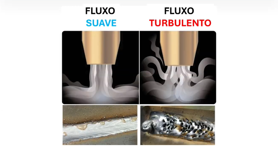 Para garantir a qualidade da solda, é fundamental que o gás de proteção flua com o mínimo de interferência possível desde o regulador até a saída do bocal.