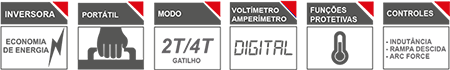 Equipamento multiprocesso em um conjunto portátil para soldagem MIG/MAG, TIG e MMA (eletrodo revestido).