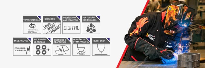 MIG-MAG convencional, pulsado e duplo pulso: Ideal para soldas de alta qualidade em chapas finas, médias e grossas, com controle preciso da penetração e do arco.