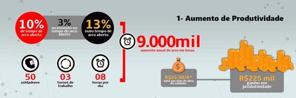 Como benefícios adicionais pode-se destacar o treinamento de soldadores e calibração dos valores de referência do painel da fonte de solda.
