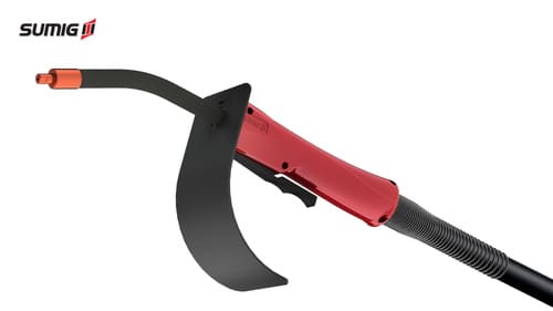 A SU 335 tem corpo longo compacto, resistente a impactos e com isolamento térmico e elétrico. Desenvolvida para processo de solda com arames sem a proteção gasosa. A tocha possui protetor para mãos e cabo de grande durabilidade, além de conduites especiais para arames de grande espessura.